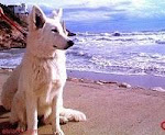 Se lo pasó bomba jugando entre el sol y las olas, con Godiva, mi pastor blanco.